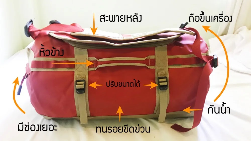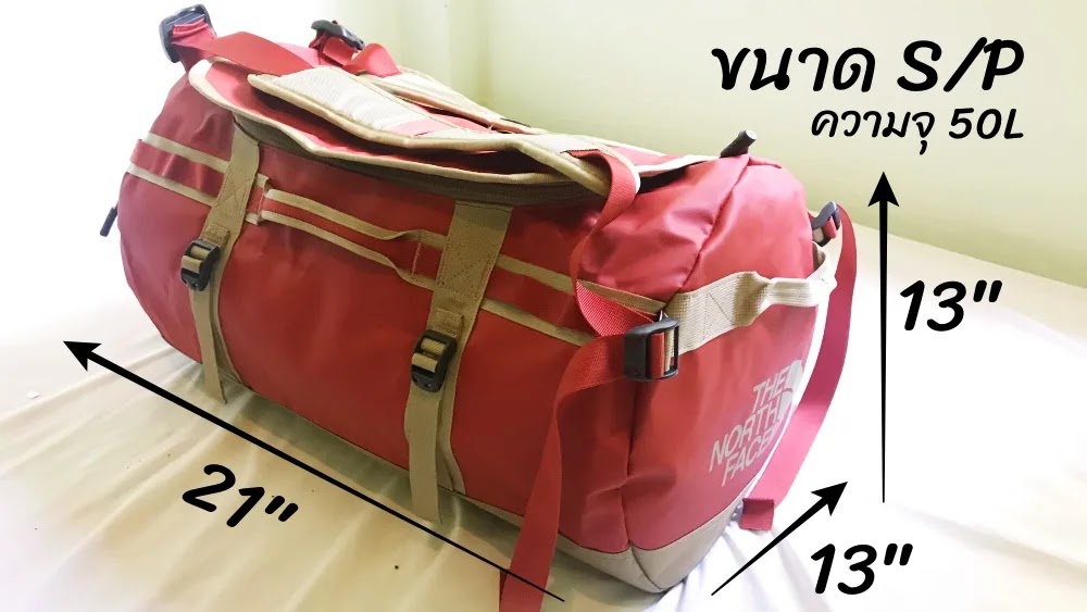 จริงๆ The North Face รุ่น Basecamp มีหลายขนาดนะ ตั้งแต่ไซส์ S ไซส์ M และ ไซส์ L ของผมเป็นไซส์ S ซึ่งเป็นขนาดที่สามารถ Carry on ถือขึ้นเครื่องได้สบายๆ (ถ้าขนาดใหญ่กว่านี้ก็จะถือขึ้นเครื่องไม่ได้) และจะได้เป็นเป้สะพายหลังที่ขนาดพอดีๆ ตอนไปเที่ยว backpack อีกด้วย