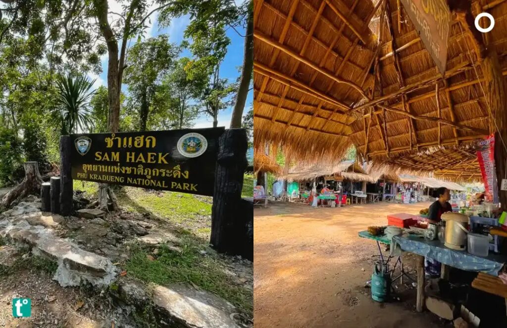 จุดพักของผมจุดแรกก็คือที่ซำแฮกครับ ซำนี้จะมีร้านขายของชำ เครื่องดื่ม ขายอาหารขายของฝากค่อนข้างเยอะ ผมจึงแวะทานข้าวเช้าเติมพลังที่ซำนี้กันเลย (ตามสั่ง + น้ำ 1 ขวด = 100.บ) ซำนี้มีวิวถ่ายรูปแบบพาโนรามามุมกว้างงที่ระดับน้ำทะเล 543 เมตร
