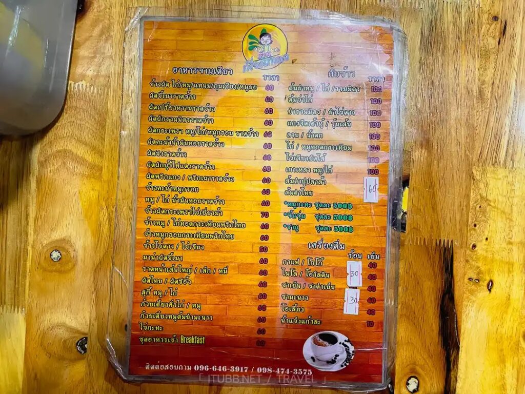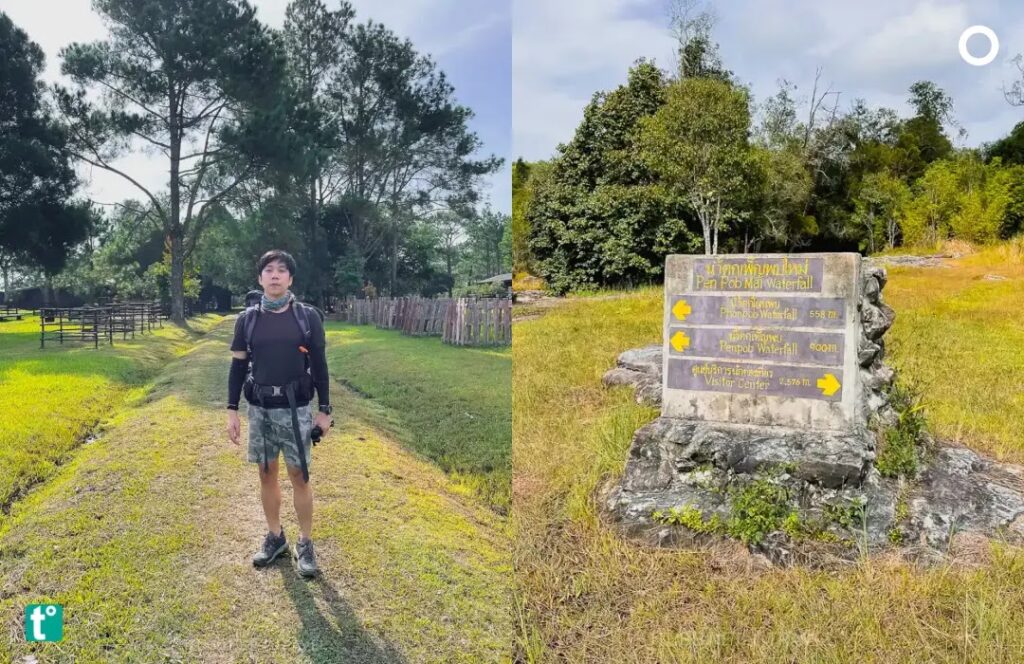 ก่อนออกเดินทางเช้านี้ ผมหามื้อเช้าตุนพลังไว้เดินทางไกลกัน กาแฟสด กับโจ๊กหมูอร่อยๆ (50 บาท) พร้อมออกเดินเท้าตอน 9 โมงเช้าครับ โดยเส้นทางที่แพลนไว้วันนี้ จากศูนย์วังกวาง – น้ำตกวังกวาง – น้ำตกเพ็ญพบใหม่ เดินลัดน้ำตกต่างๆ มาเรื่อยๆ – สระอโนดาต แล้วมาดูดวงอาทิตย์ตกดินที่ ผาหล่มสัก … ซึ่งเราไม่ต้องกลัวหลงทางเพราะมันมีป้ายบอกทางตลอด