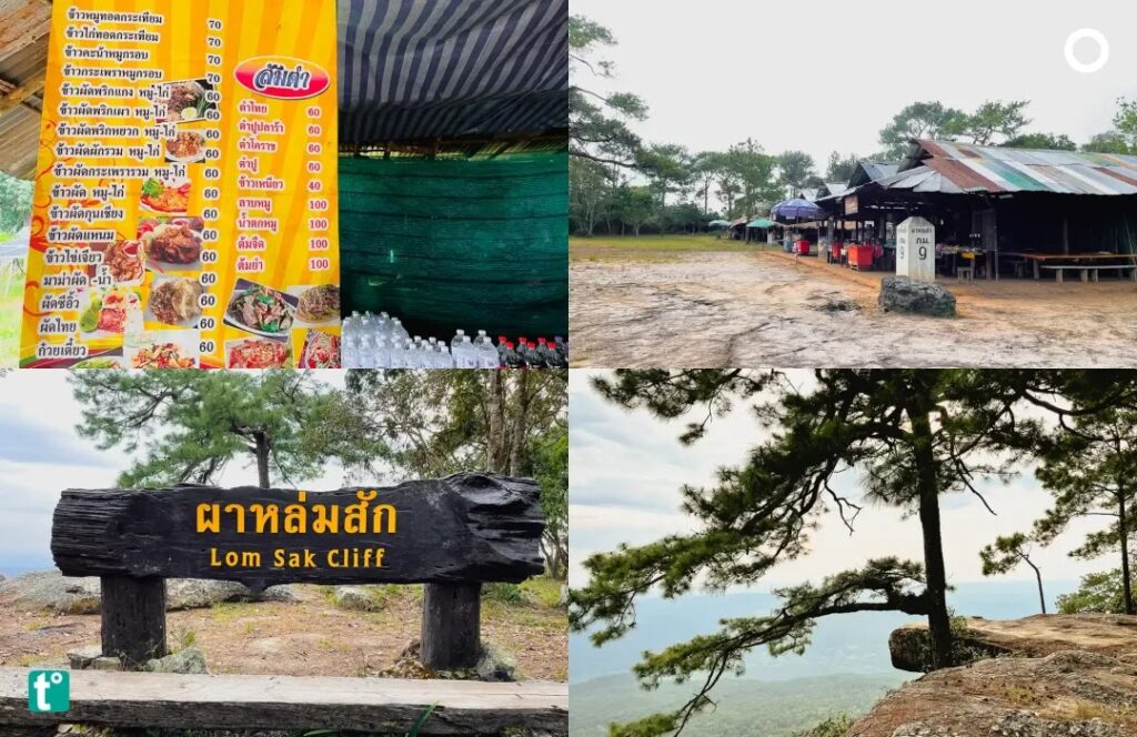 ผมเดินถึงที่ผาหล่มสักในเวลาประมาณ 15.25 ครับ จะบอกว่าหิวมาก เพราะยังไม่ได้ทานข้าวเที่ยงเลย ได้กินแต่ช็อกโกแลตและขนมรองท้องมาตลอดทาง แต่ที่นี่มีร้านอาหารร้านน้ำอยู่ 4-5 ร้านได้ ราคาข้าวต่อจานจะอยู่ราวๆ 60-70 บาทได้ครับ