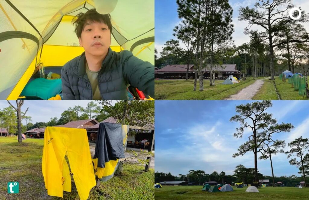 อากาศเย็นและชื้นทำให้เต้นท์ของผมเต็มไปด้วยน้ำค้างและเปียกมาก ถึงฝนไม่ได้ตก แต่สภาพเต้นท์และพื้นหญ้าเหมือนฝนตกเลยครับ สิ่งที่ชอบก็คือ อากาศที่ตื่นมาแล้วสดชื่นมากๆ ไม่มีมลพิษและ PM2.5 ทำให้ผมสูดอากาศบริสุทธิ์ได้เต็มปอดจริงๆ
