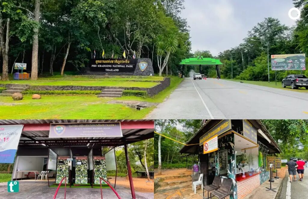 จากทางเข้าอุทยานฯ ขับต่อมาอีกนิดเดียวเพื่อมาที่ทำการอุทยานแห่งชาติภูกระดึงครับ จุดนี้เราสามารถจอดรถที่ลานจอดรถ (ฟรีก็ได้ หรือจะแบบเสียเงินด้านในก็มี) เมื่อเตรียมพร้อมแล้ว ก็มาเช็คชื่อเช็คคิวที่จองไว้ผ่านแอปคิวคิว QueQ และตรวจเอกสารวัคซีนโควิดด้วยจ้า